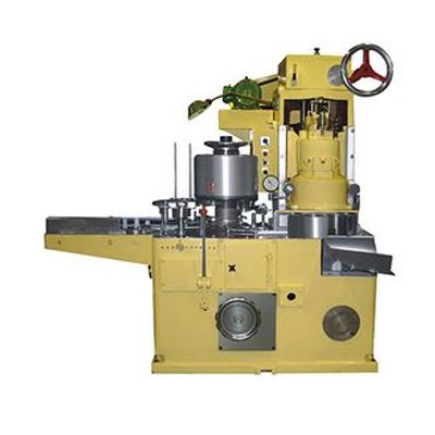 After the empty cans pass the conveyor and separated by enter-in cans screw, the hook chain take them into the caps convey turnplate, the sensors detect the cans and the falling caps device fall caps down, the caps convey turntable take the cans into the pre-sealing head,the tips suck the cap and press down the can and pre-seal, after pre-sealing the dialing plate take the cans into eight fork turntable,and rotate into the annular seal space under the head, instant vacuum and the CAM control the can support seat rising to withstand the pressure head,then the fisrt and the second roll wheel one after another seal, and after sealing the cans will be taken out to the slideway by the eight fork turntable.