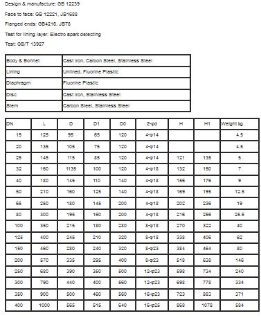 It is special for controlling the noncorrosive or the strong corrosive media. Its body inner surface is unlined or lined with different fluorine plastics which can be selected to suit with different working temperatures and fluid pipelines. Suitable temperature: £85°C, siOO`C £120`C, siSO`C according to the materials of lining and diaphragm