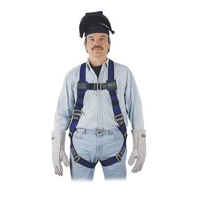A complete line of lightweight, comfort welder harnesses features blue, flame-retardant Nomex webbing to protect against weld splatter. The special inner Kevlar core adds strength and high-temperature resistance. Contrasting webbing colors make inspection easier.