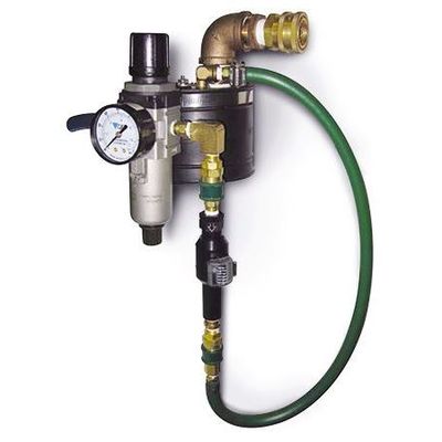 • Flange: Sealing flange with fittings for connection to air supply and liquid discharge lines