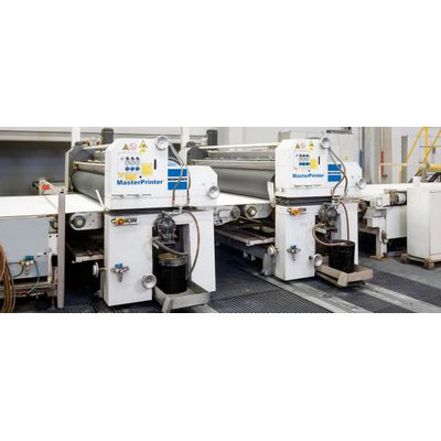 High-tech for single and multi-coloured patterns using the direct printing method: Wemhöner MasterPrinter® is a highly innovative and powerful printing machine for shaping wood and fantasy decors using the "indirect gravure process". The system is designed to achieve optimum print results for working widths up to 2,600mm. Variable repeat lengths. Single and multi-colour printing in perfection.