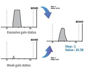 Adopts all reception signals which is higher than the set threshold amplitude and converts it to density value, peak-hold method. This measurement method can not avoid inaccurate measurement coming from electric noise or intermittent turbulence in the field.