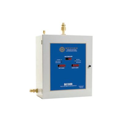 Item # Ds1000-2-2-F, 2000 Scfh Maximum Flow Rate Air Digital Manifold System With Standard 10 In. On Center Head And Floor Mounted (Floor Stand Option Required With Crossover Option) Western Innovator DS1000 Digital Manifolds provide fully automatic system control. An Integrated Circuit Board monitors cylinder bank pressure electronically, controlling changeover and eliminating the need to manually reset levers or valves. Easy-to-read digital displays show the delivery and individual bank pressures. A series of lights for each bank indicates whether the bank is "in service", "ready for use", or bank depleted.