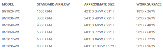 The Downdraft Table version within the WC Series provides operators with efficient dust collection while maintaining operator versatility. This is accomplished through the combination of both downdraft and backdraft airflow for superior containment of dust and its pin-hinged, removable side wings that direct airflow yet can open or be removed if required by the particular part being worked or processes being performed.
