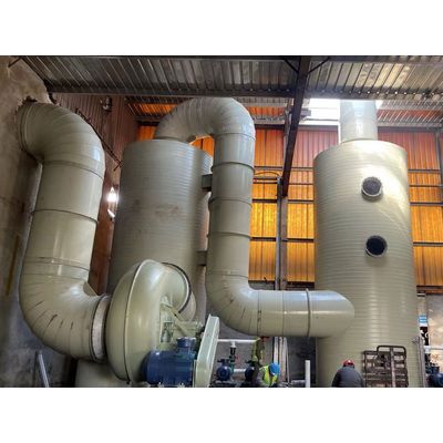 - Gas Inlet Zone:Contaminated air enters the FRP scrubber tower