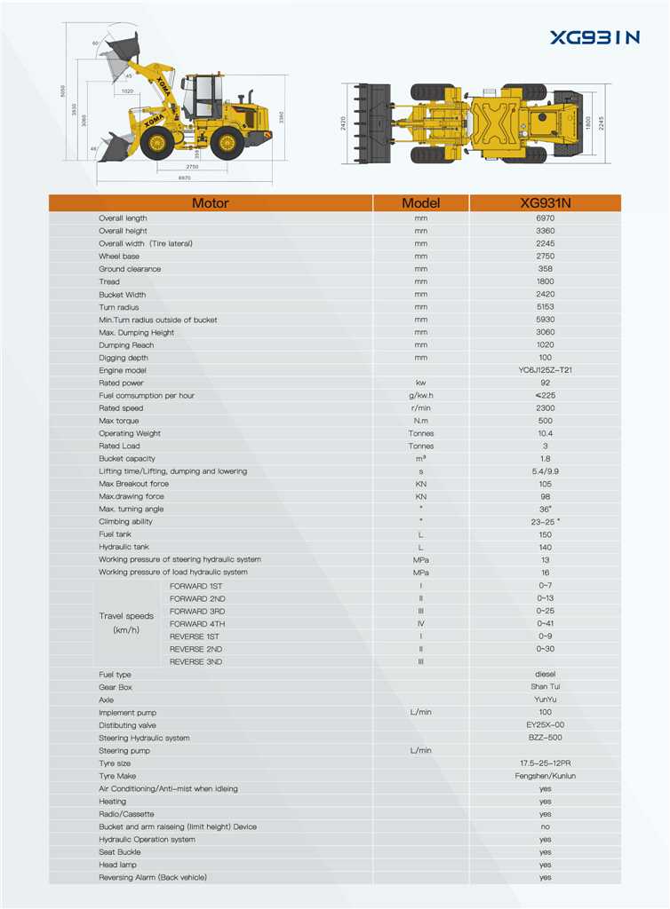 - Great digging power and large unloading radius bring about high working efficiency; high-strength bucket comes with exceptional performance in wearing resistance and durability.