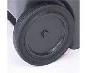 The use of larger 250 mm diameter wheels is recommended if the two 2 wheeled waste recycling bins are primarily used on unpaved ground. The wheels, available at a surcharge, facilitate manoeuvring of the wheeled refuse bins.