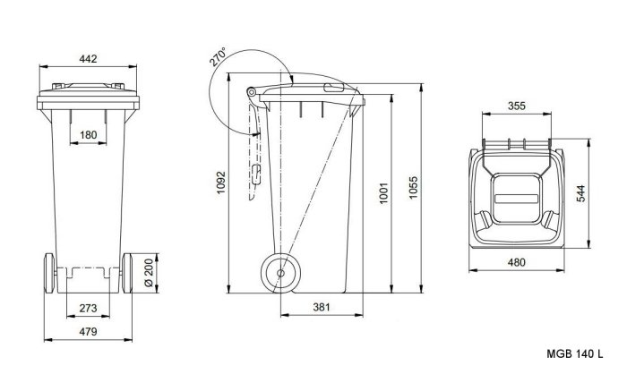 Wheelie bins Weber - Model MGB 140 litre -Wheelie Bins
