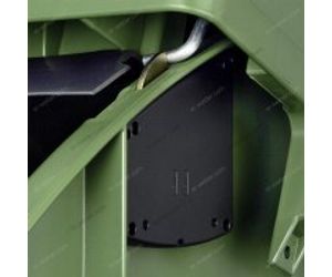 The easy-to-operate foot pedal of the mobile four 4 wheeled recycling bins facilitates the opening of the roll top lid. Both hands are therefore free to conveniently fill the mobile recycling containers.