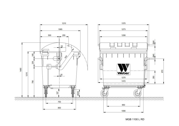 Wheelie bins Weber - Model MGB 1100 litre RL -Wheelie Bins