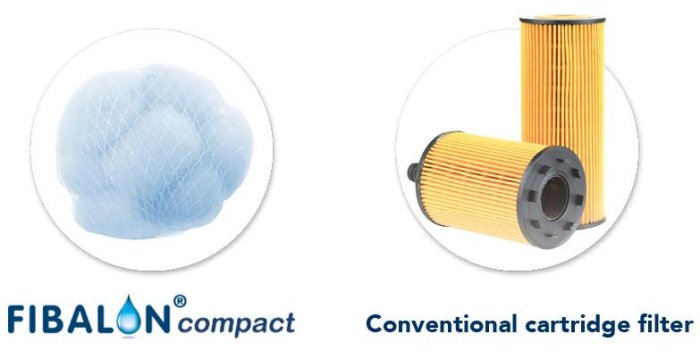 FIBALON® compact V 1.400 replaces a 4 inch cartridge filter with about 10.5 cm (4.13 inch) diameter and a height of 10-20 cm (3.94-7.87 inch)
