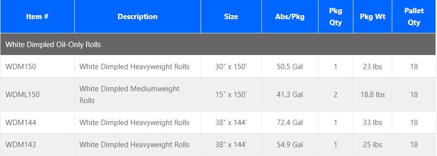 MBT - Model WDM -White Dimpled Oil Only Sorbents