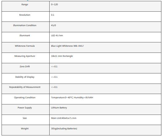 - The optical path design is reasonable, simple. Adopt filter system with correction, the whiteness can be reflected quantitatively.