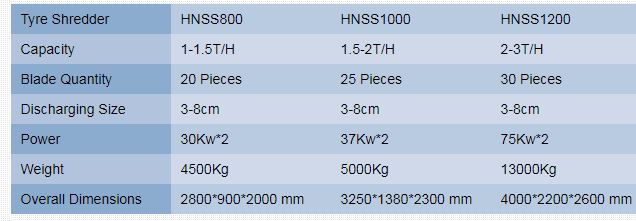 This Whole Tyre Shredder possesses such features as compact structure,advanced technology,low energy consumption,high efficiency etc。the crushing room adopts split structure,which is very convenient to maintenance。the machine adopts hard alloy steel as its blade,high rigidity and wearable。it could be re-used by sharpening for extending the service lifetime.