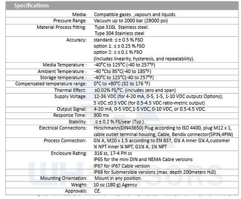 WHsensors - Model WH 131-PT -High Accuracy Precision Pressure Transmitter/transducer