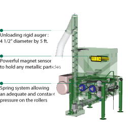 WIC Roller Mills offer precision while being simple to operate. Single or double Roller Mills available. Grains crush uniformly to obtain fresh rations. Up to 6 ingredients milled simultaneously. 3 types of rollers can be combined to obtain the required texture: Diamond tips R4 4 grooves per inch R10 10 grooves per inch A powerful magnet sensor prevent any metallic object from infiltrating into the recipe. A system of springs allows an adequate and constant pressure on the rollers.