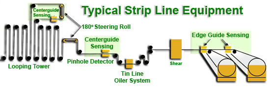 Non-Contact Strip Width Measurement, Available with Fixed or Moveable Sensor Carriage, High Accuracy 0.4mm (0.016"), Compact Design for Easy Installation, No Moving Parts, Variable Width 32 to 86 Inches.