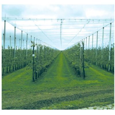 The WIESEL System Flat-Net perfectly protects against sun and hail. The WIESEL System Flat-Net makes row distances of up to 11 m and clearance heights to a maximum of up to 5 m possible. Very sturdy construction by means of tested anchoring in the soil. The WIESEL System Flat-Net is wind and rain permeable and solid at wind speeds of up to 100 km/h(62 mph). Shadow formations in various categories, depending on the knit density: 8/13/18/30/50/90%