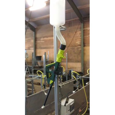 The dosing unit is available as both a manual version and an automatic version. The automatic version can be used on a moving conveyor belt