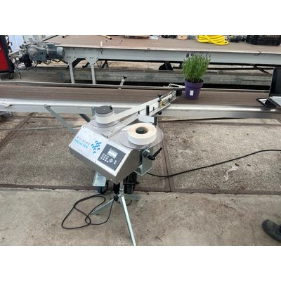 The Smart sticker machine is ideal for applying pre-printed stickers to various hard materials such as pots and boxes. This Smart sticker machine uses pre-printed stickers that can be produced in the office using a label printer and a roll-up system.