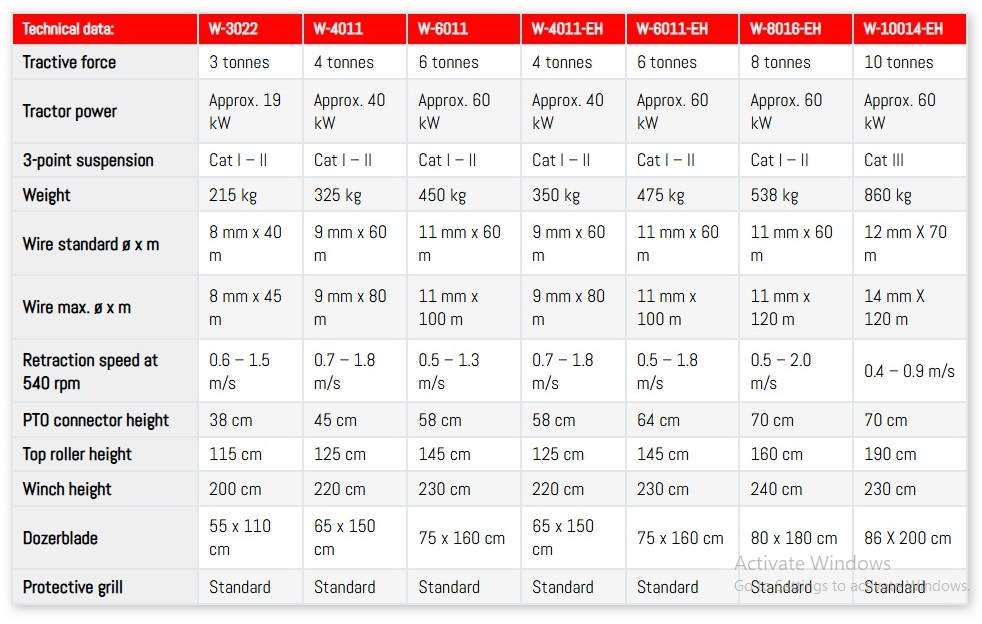 The power for the W-EH winches is taken from the tractor via the 3-pin connector.