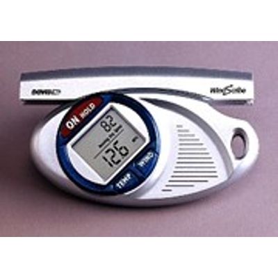 The Model 276 WindScribe Ultrasonic wind meter uses patented technology to read current wind speed, highest positive speed (headwind), lowest negative speed (tailwind), 5-second average, and running average. Select from mph, km/h, fpm, m/s, f/s, or knots, plus temperature and wind chill in tenths of degress F or C. Sensitive to breezes as low as 0.4 mph, yet withstands winds as high as 150 mph. Includes replaceable 3-volt lithium battery, lanyard and mounting bracket. Battery lasts up to 600 hours. Dimensions: 5` x 3` x 3/4`.