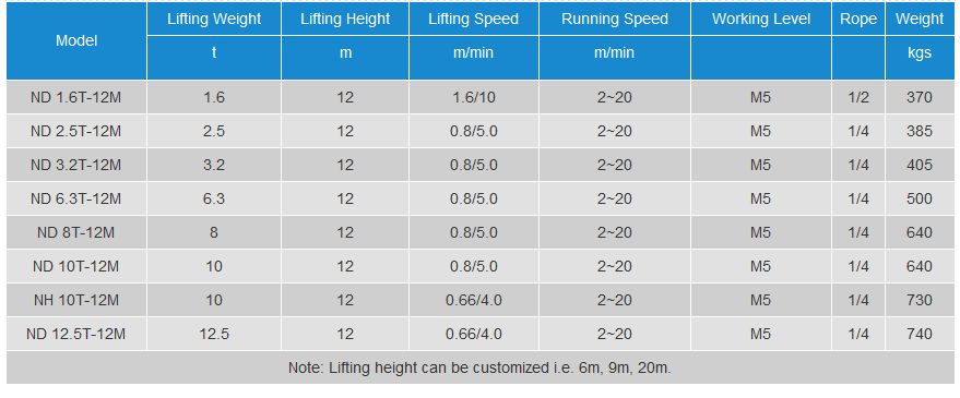 - Product Name: ND Wire-Rope Electric Hoist