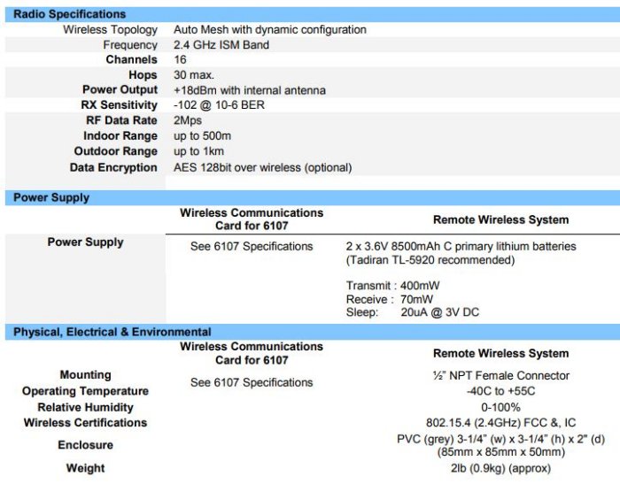 - No signal wiring required, uses wireless link to communicate data from the probe to the 6107 monitoring panel