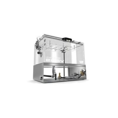 Package Leak Detection / Leak Testing system using a water-based bubble leak test. LEAK-MASTER® EASY allows the detection even of the smallest of leaks in packages and a seal integrity test. After the package is placed into the test chamber filled with water, the head space above the water level is evacuated. This is done with the help of a compressed air operated Venturi nozzle (optionally also with electric vacuum pump). Thus, the package immersed in the water inflates, allowing any leaks and their location to be identified by a stream of bubbles.