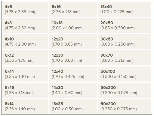 Products are available in the following mesh sizes (specialized particle distributions are also available on request).