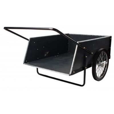 14 Cube Wooden Cart. Capacity: 400 lbs / 14 Cu Ft. Frame Description: 1` Powder Coated Steel Tube Frame, Sides Finished with Aluminum U-Channel & Powder Coated Wood Body. Special Features: Removable Front Gate. Wheels: 20` Pneumatic Tires. Hardware: Yellow Dichromate Finished. Assembly Time (Minutes): 30. Handle: U-Handle. UPC: 0-26432-35057-5.