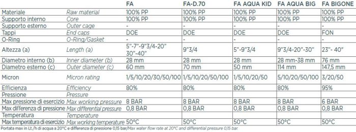 The FA cartridges can be used as end-line filtration or as prefiltration, to remove sand, lime and rust.