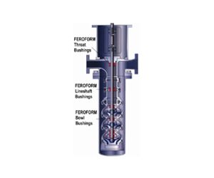 FEROFORM T127 is particularly suited for the bearings for vertical pumps where it can run dry at start up on the top bearings.