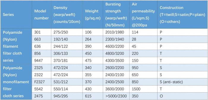The polyamide (PA) or Nylon material with the properties of abrasion resistance and super tensile strength which is born to be an excellent material of filter fabrics production. The PA/nylon filter cloth from Zonel Filtech are divided into multifilament filter fabrics and monofilament filter fabrics series, which will suggest to end users according to different working circumstances. The PA filter fabrics can be offered by filter cloth rolls, or readymade filter fabrics/filter bags according to client’s requirements.