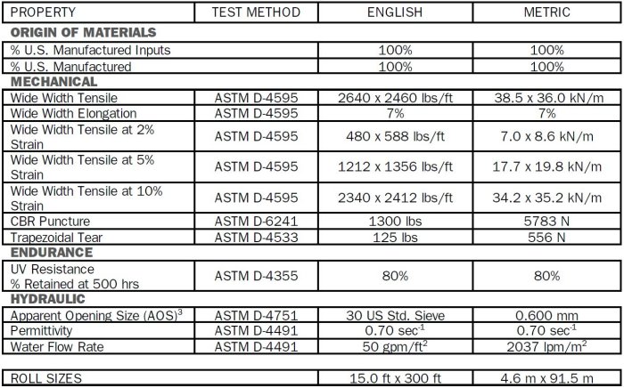 GEOTEX 2X2HF is a woven polypropylene geotextile containing heavy woven monofilament/fibrillated yarns produced by Propex, and will meet the following typical values when tested in accordance with the methods listed below. These characteristics make GEOTEX 2X2HF ideal for the construction of embankments over soft soils, steepened slopes, and modular block and/or wrapped-face retaining walls. The geotextile is resistant to ultraviolet degradation and tol biological and chemical environments normally found in soils. GEOTEX 2X2HF conforms to the property values listed below.1 Propex performs internal Manufacturing Quality Control (MQC) tests that have been accredited by the Geosynthetic Accreditation Institute - Laboratory Accreditation Program (GAI-LAP).