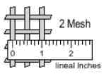 For figuring out mesh sizes you have to count the number of openings from the center of any one wire to the center of a parallel wire one inch away. The number of openings is the mesh size. So a 2 mesh screen means there are two little squares across one linear inch of screen. A 100 mesh screen has 100 openings, and so on. Note, therefore that as the number describing the mesh size increases, the size of the particles decreases. Screens can be made with different thicknesses of wire. The thicker the wires, the smaller is the particle passing through that screen, and vice versa.