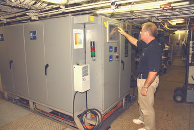 All AquaTex™ AWP Systems are fully automated using an Allen-Bradley Programmable Logic Controller (PLC). The PLC is equipped with modem or Ethernet internet connectivity for reach-back monitoring of off ship system performance. This enables WRI specialists to ensure continued reliable service of the system and predict and trouble shoot operational issues.