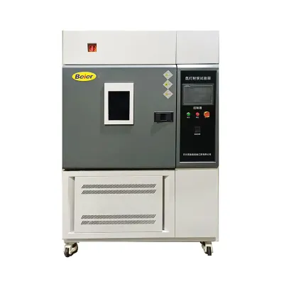 The Xenon Test Chamber from Beier is designed for climate aging tests, utilizing a xenon arc lamp to simulate the full sunlight spectrum. This technology is pivotal for accelerated weathering tests, capable of replicating environmental conditions that contribute to material deterioration over time. The test chamber's structure is backed by a custom stainless steel sample rack and features an intelligent PID temperature controller. Humidification is achieved through electric steam, with a bottom water tank ensuring automatic water supply management. The Xenon Test Chamber can be adapted to both flat-panel and rotating drum configurations, with the capacity to customize to specific sample sizes, ensuring versatility across various industries. It adheres to standards such as GB/T16422-2, ASTMD529, and ISO4892-2, supporting reliability in results. The equipment competes with internationally recognized brands, offering compatibility with imported components if required. Its capacity varies, with models like the BR-XD6500 accommodating up to 67 samples.Most popular related searches