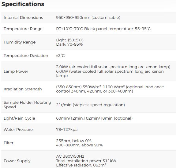 - Xenon test chamber supports various simulated environmental conditions and accelerated exposure testing.