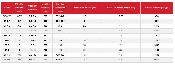 The structure of SF flotation cell is mainly composed of tank, the main parts with impeller, motor, scraper and transmission device, etc. The volume of SF flotation cell is more than 10m3.