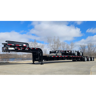 XL’s Step Deck Extendables are built for larger capacities – up to 150,000 pounds. This trailer features a single drop-step deck, the neck is fixed to the trailer and does not detach. The main deck extends to accommodate longer loads. Step Deck Extendables can be paired with a Jeep or Booster for additional axles in order to scale heavier loads.