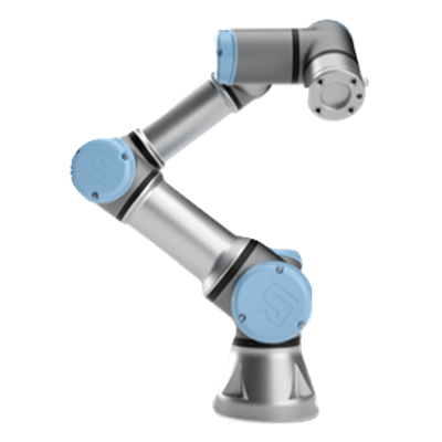 The UR3e collaborative robot is a table-top robot. The compact table-top cobot weighs only 24.3 lbs (11 kg), but has a payload of 6.6 lbs (3 kg), ±360-degree rotation on all wrist joints, and infinite rotation on the end joint.