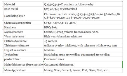 Wear resistant CCO steel plate has high wear resistance and good impact resistance, can be cut, bent, welded, and can be welded plug welding, bolted connection and other structural connections over time during the maintenance process. It is convenient to use and widely used Metallurgy, coal, cement, electricity. Compared with other materials, glass, mining, building materials, ceramic tiles and other industries have very high prices, attracting more and more industries and manufacturers.