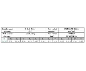 Nickel alloys are essential in modern industry due to their outstanding properties. They offer excellent corrosion resistance, enduring acidic, alkaline, and saline environments, making them ideal for chemical plants and petrochemical refineries. These alloys also excel in high-temperature strength and stability, crucial for aerospace and energy sectors. For example, they are used in aircraft engine turbine blades and nuclear reactor components to withstand extreme heat and mechanical stress. Additionally, nickel alloys are tough, resisting cracking and deformation. This, along with their conductivity and durability, makes them suitable for marine engineering, electronics manufacturing, and high-quality electrical connectors. The EDX8800H Max is a specialized device for testing nickel alloys.1.Equipped with Peltier electric refrigeration, the FSDD silicon drift detector not only has excellent short-term reproducibility and long-term reproducibility, but also has excellent element resolution.
