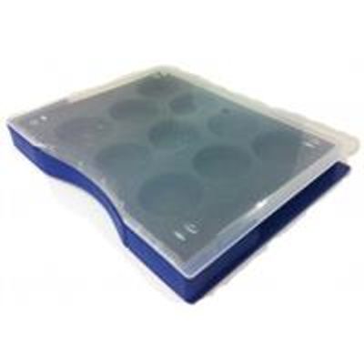 Box Salsa 1630 for up to 10 samples with maximum diameter of 50mm. To combine with our round sample boxes BX-0004-46-6 bottom blue, lid transparent