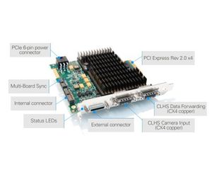 Building on the field proven capability of Teledyne DALSA’s Xcelera frame grabber series, the Xtium™-CLHS PX4 is based on AIA’s CameraLink HS standard and uses PCI Express™ Gen 2.0 expansion bus to deliver high speed image acquisition and image transfer to the host memory. Xtium-CLHS uses industry standard CX4 cable to delivery up to 2.1 GB/s of image acquisition over a single cable to go beyond 15m and host transfer speeds of up to 1.7GB/sec - all in a compact, half-length, single slot solution.