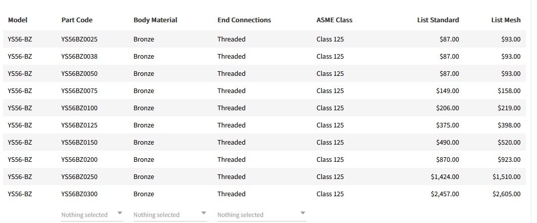 Product Features: Large Straining Capacity. Precision Machined Seats. Self Cleaning Capability Threaded Cap. Threaded Cap.