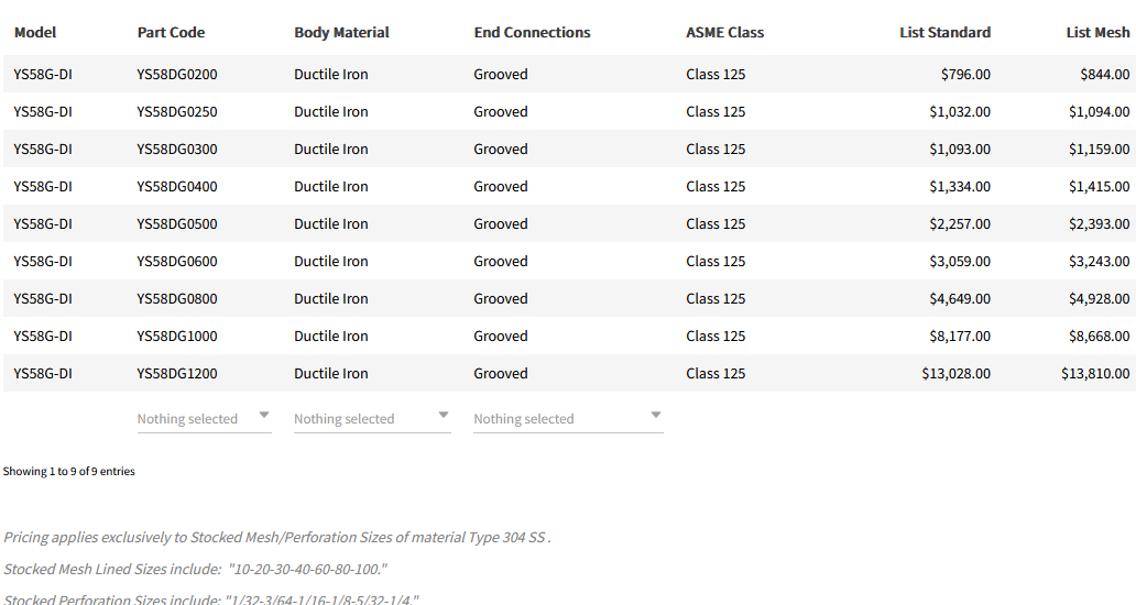 Product Features: Grooved-End Design. Large Straining Capacity. Rugged Construction. Self-Cleaning Capability. Epoxy Painted. Potable Water/FDA Approved Coatings Available. Natural Gas Applications.