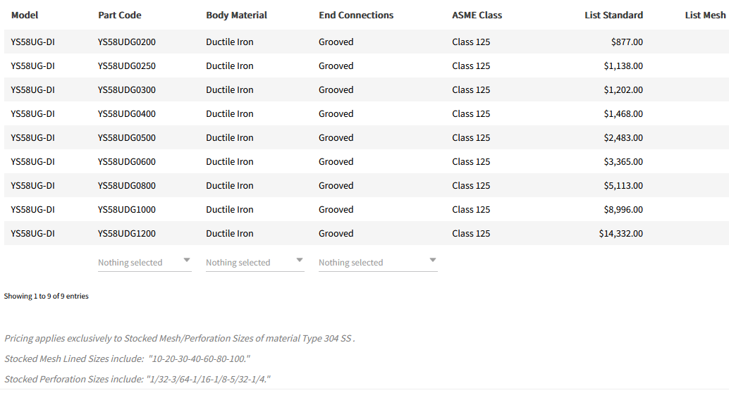 Product Features: Grooved-End Design. Large Straining Capacity. Rugged Construction. Self-Cleaning Capability. UL Listed.