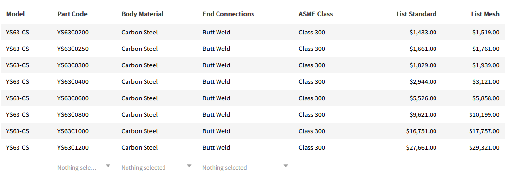 • Body Material: Carbon Steel (A216 Gr. WCB)